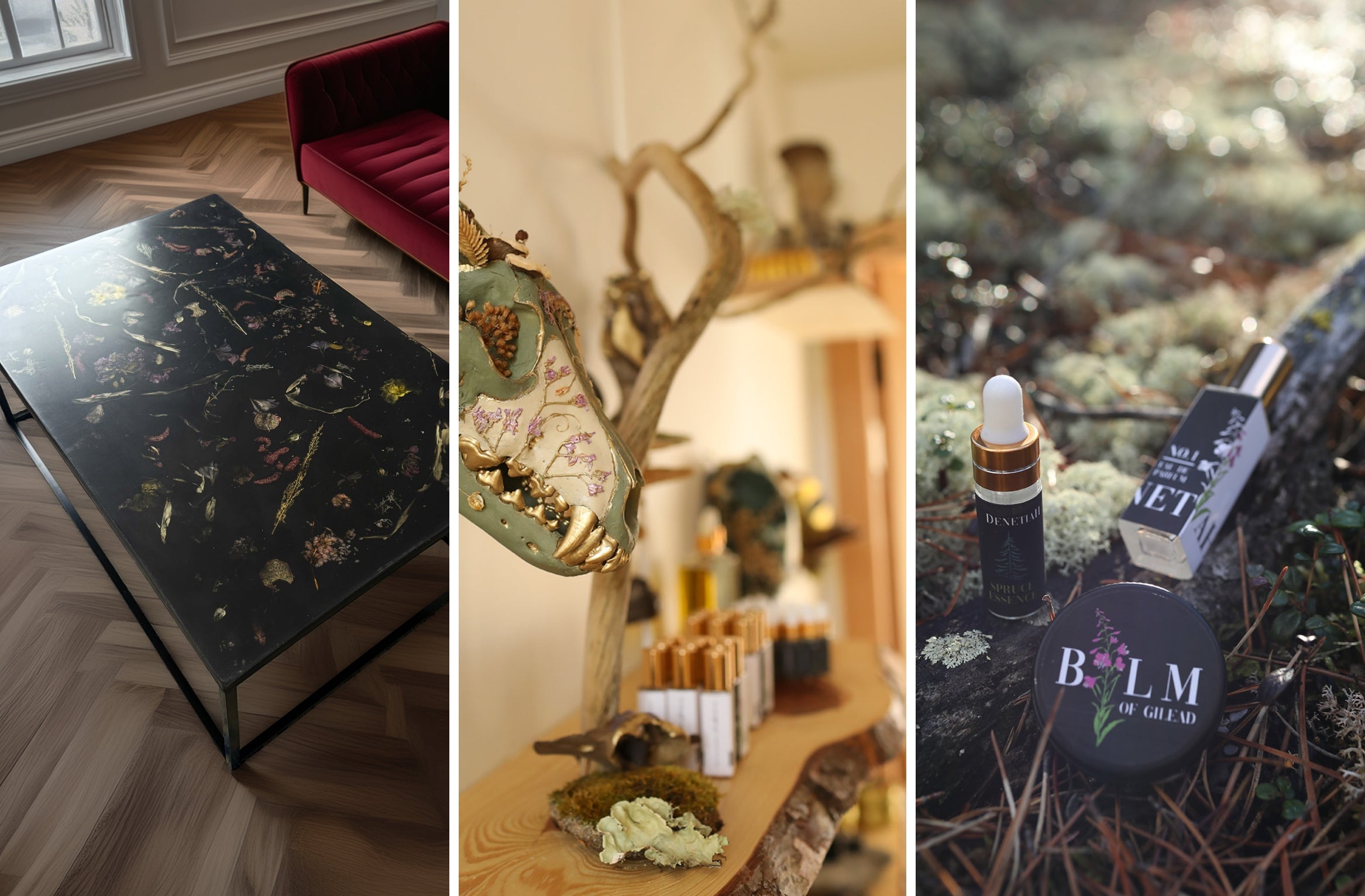 Preserved botanicals, bones, and foraged materials transformed into striking sculptural works for your lobby, spa, or guest suites — each piece a sacred relic of the land.